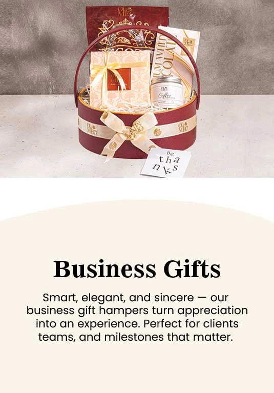 A refined keepsake hamper with bon bons, cranberry biscotti, white chocolate bar, and a candle — perfect for clients, leaders, or formal gifting.- PKR 8,200
