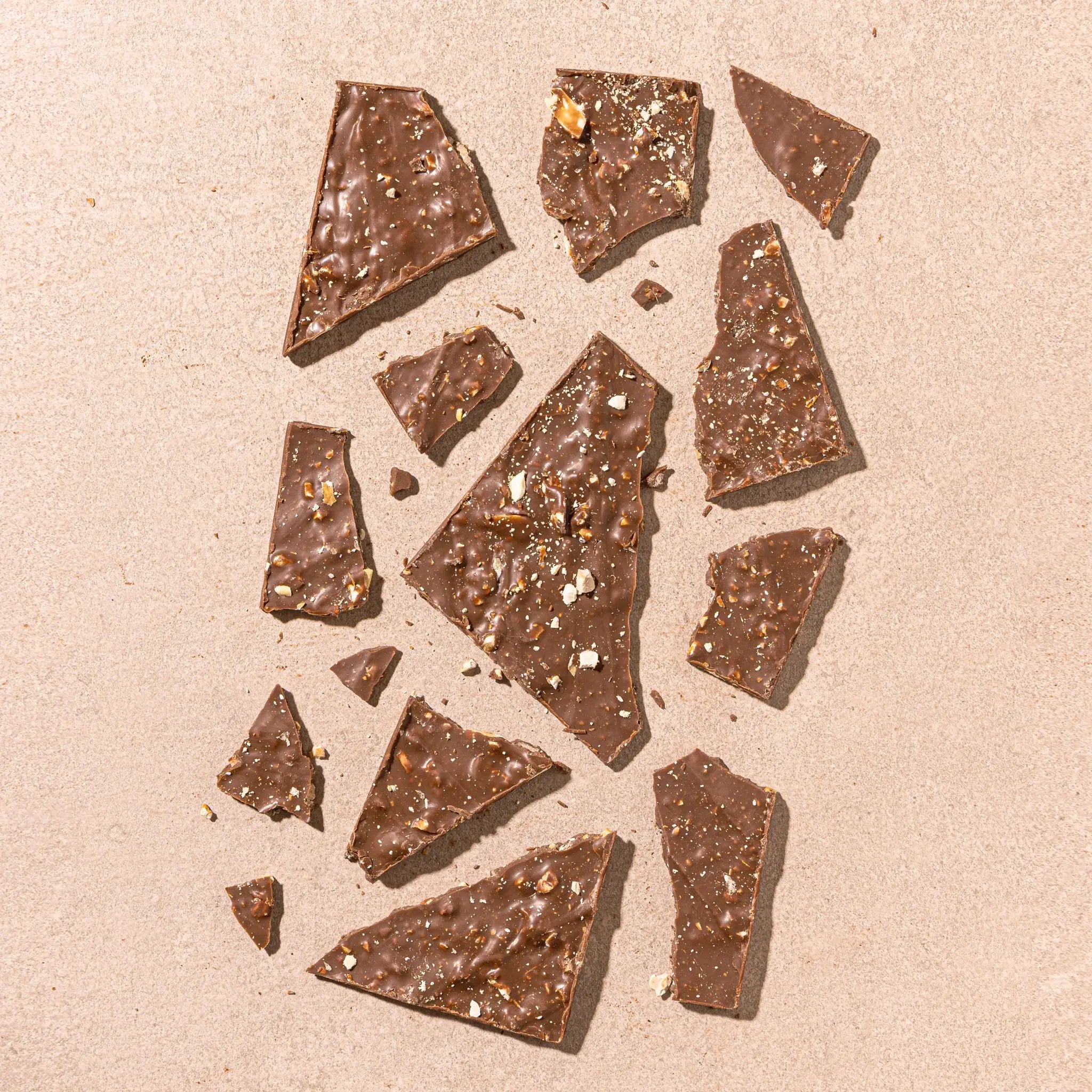 Made with 36% Cocoa, crunchy roasted almonds scattered through smooth milk chocolate — handcrafted for joy in every shard.
