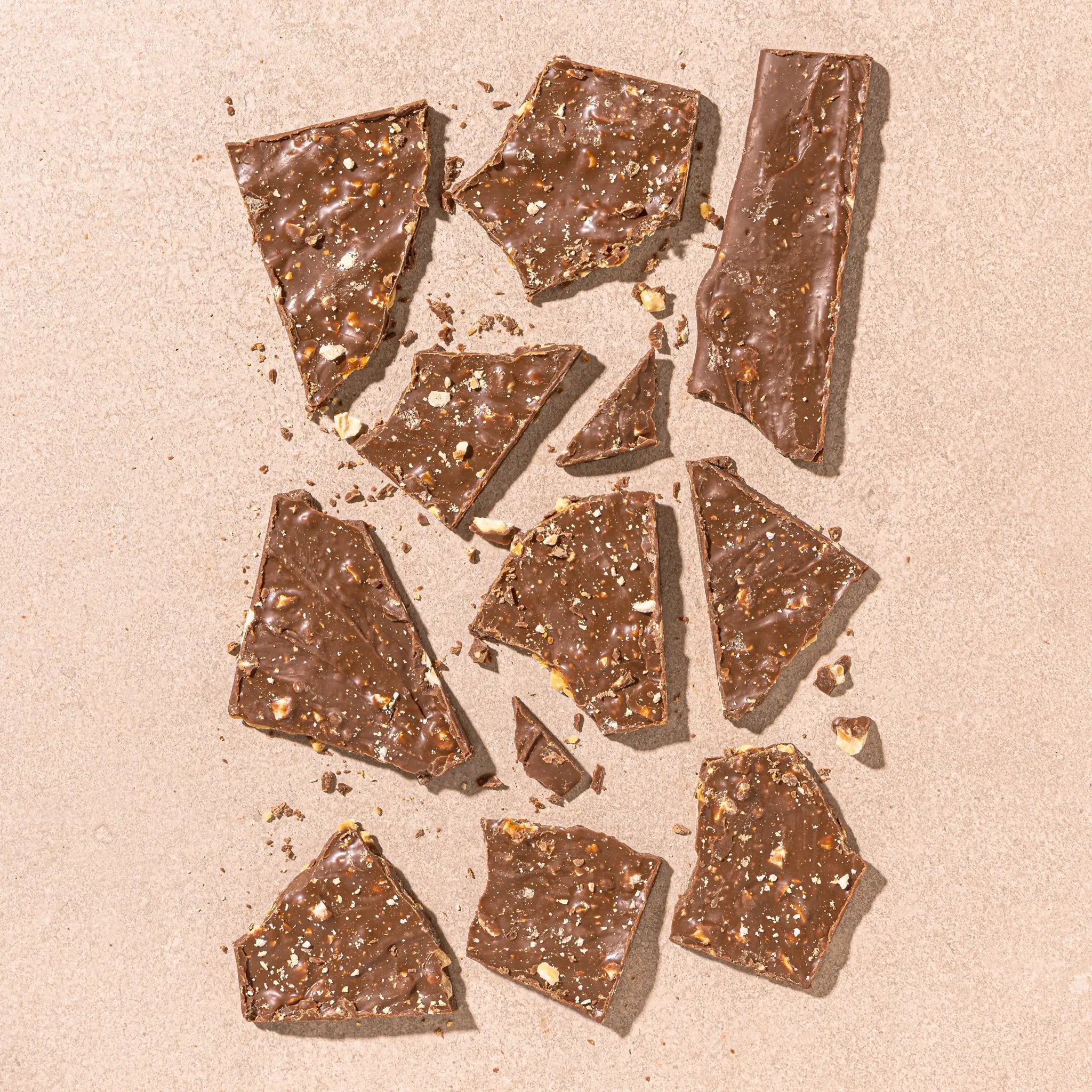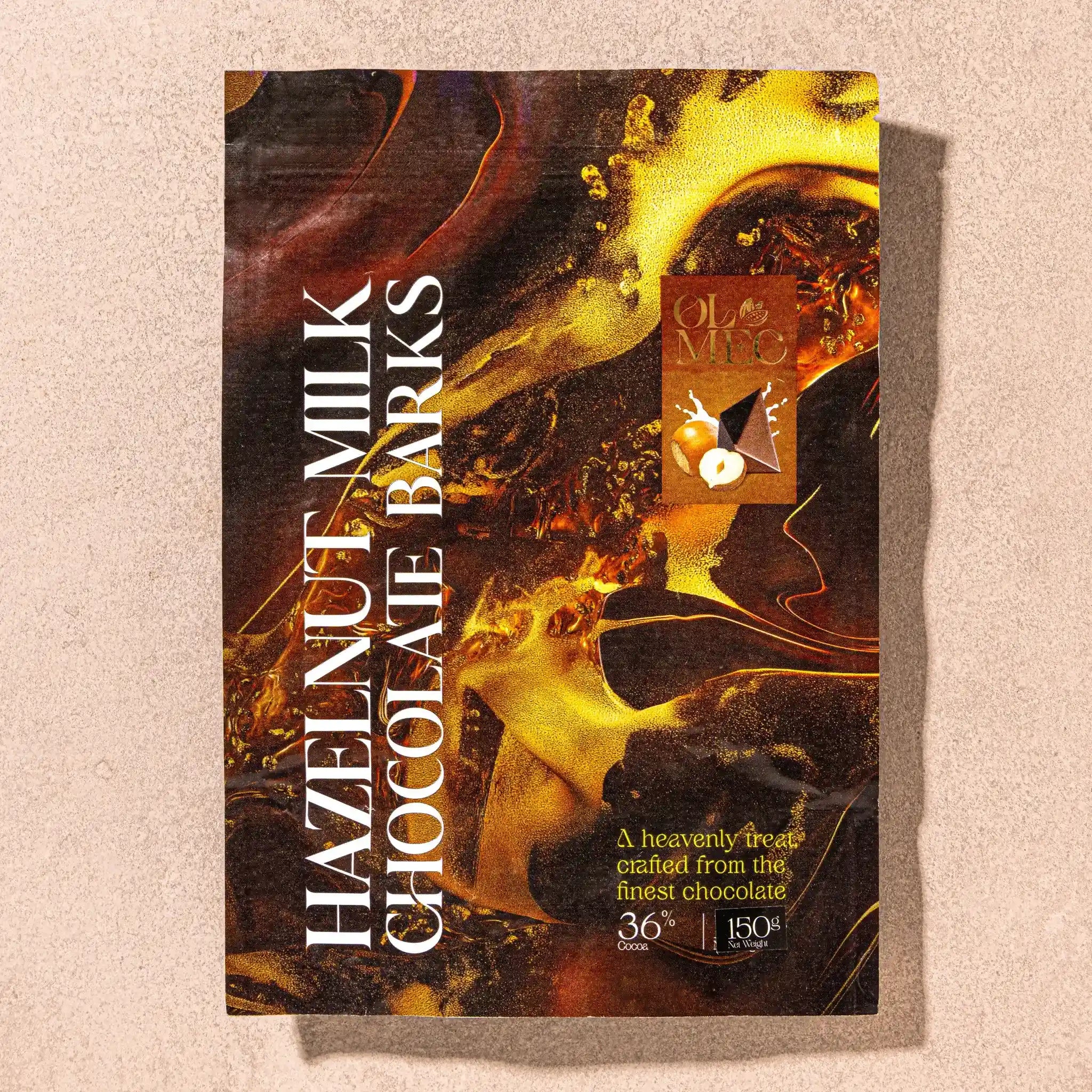 Made with 36% Cocoa, handcrafted bark with generous pieces of toasted hazelnut nestled in rich milk chocolate.