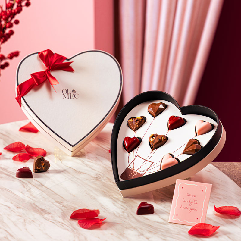 An Ivory Noir heart box packed with 8 adorable sweetheart bon bons. Inside? A hot-air-balloon tray with floating hearts because… extra is the vibe. Cute on the outside, indulgent on the inside.Flavours: Sea Salt Snap, Strawberry Cheesecake, Caramel, Cranberry Hazelnut.