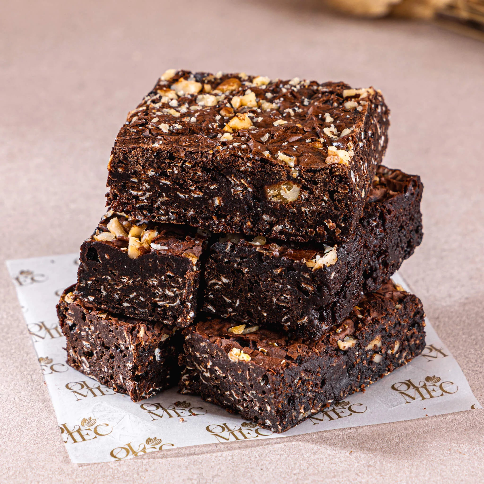 Thick, fudgy chocolate brownie packed with crunchy walnuts — bold, nutty, and deeply satisfying.