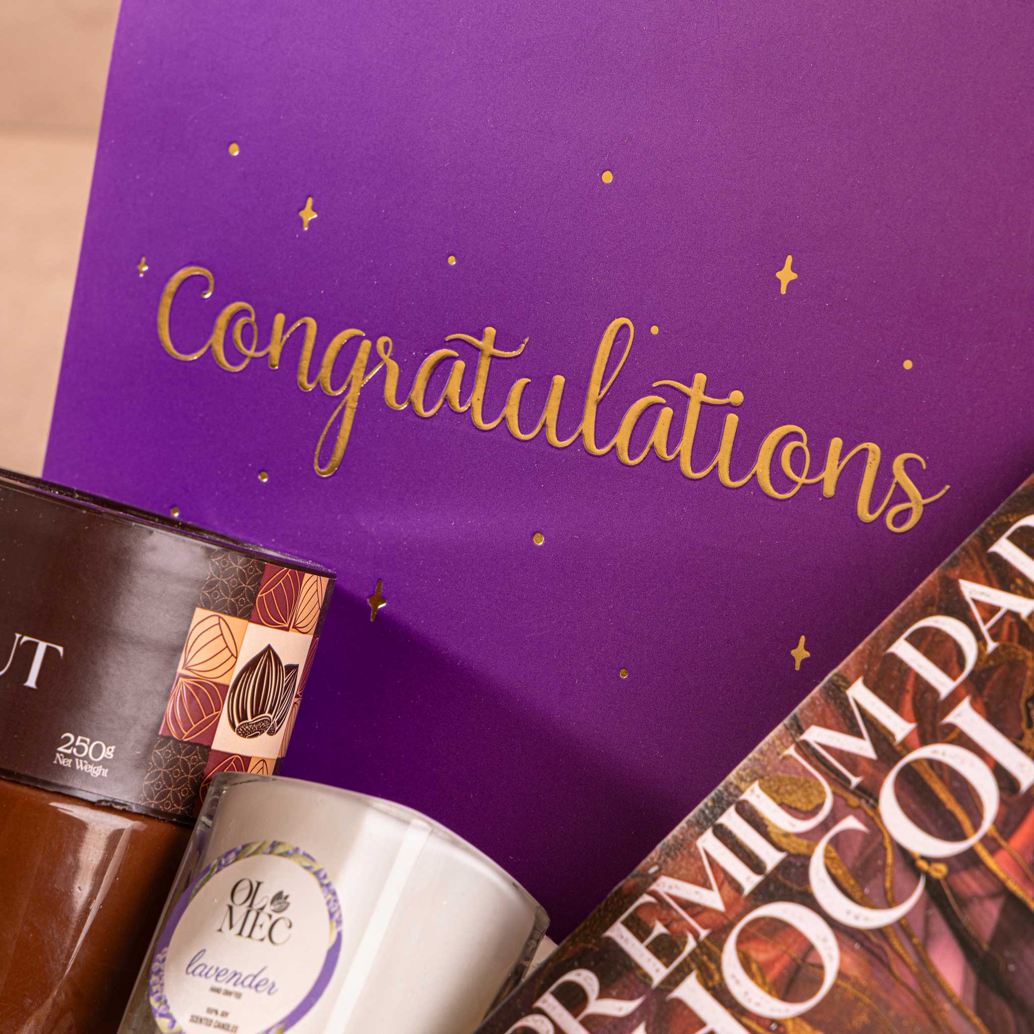 This celebratory hamper brings together rich chocolates, a smooth chocolate hazelnut spread, and a calming lavender candle to mark the win properly. Big moment, well deserved.